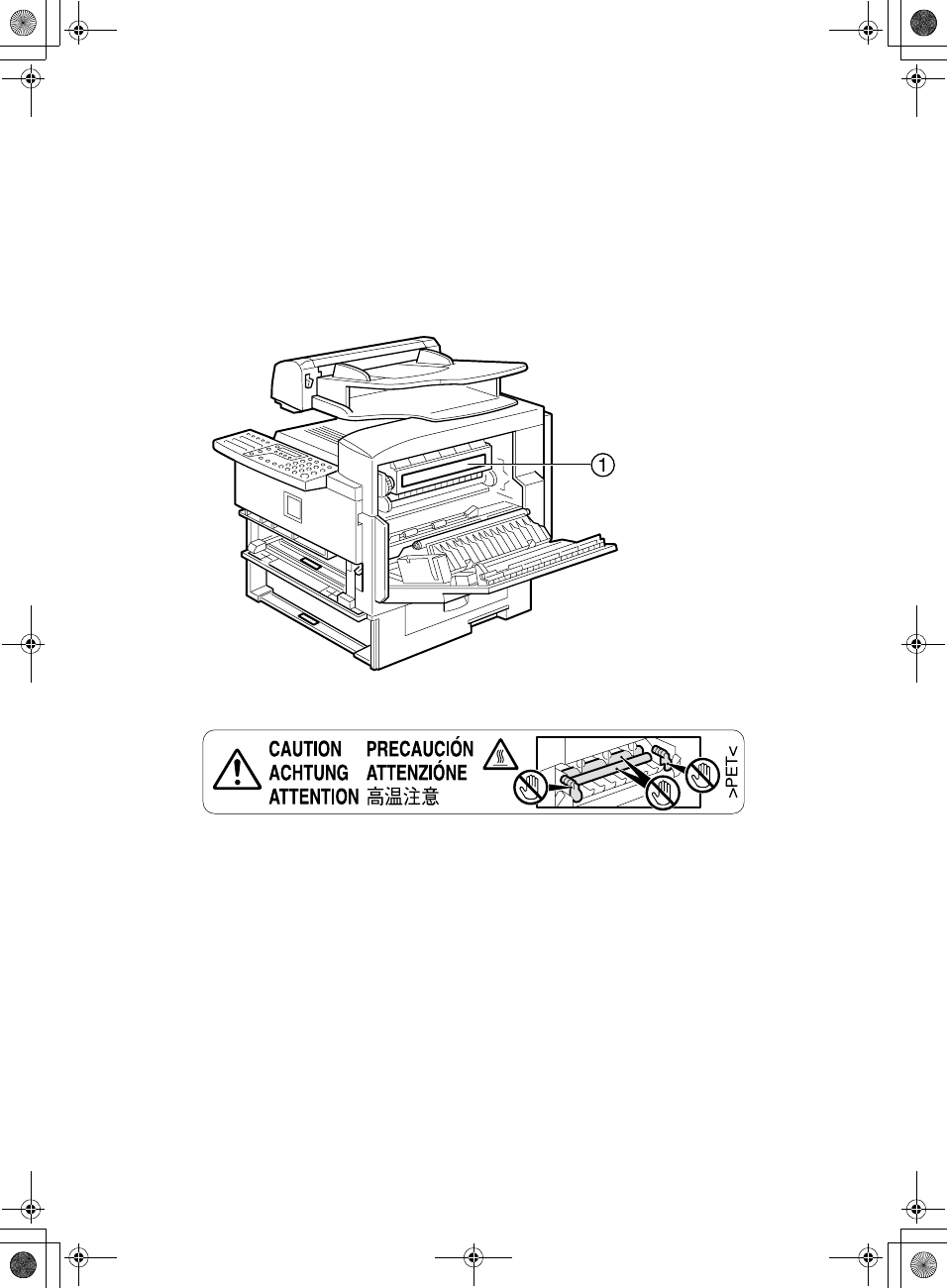The inside of the machine becomes very hot. Do not touch the inside. Doing so
